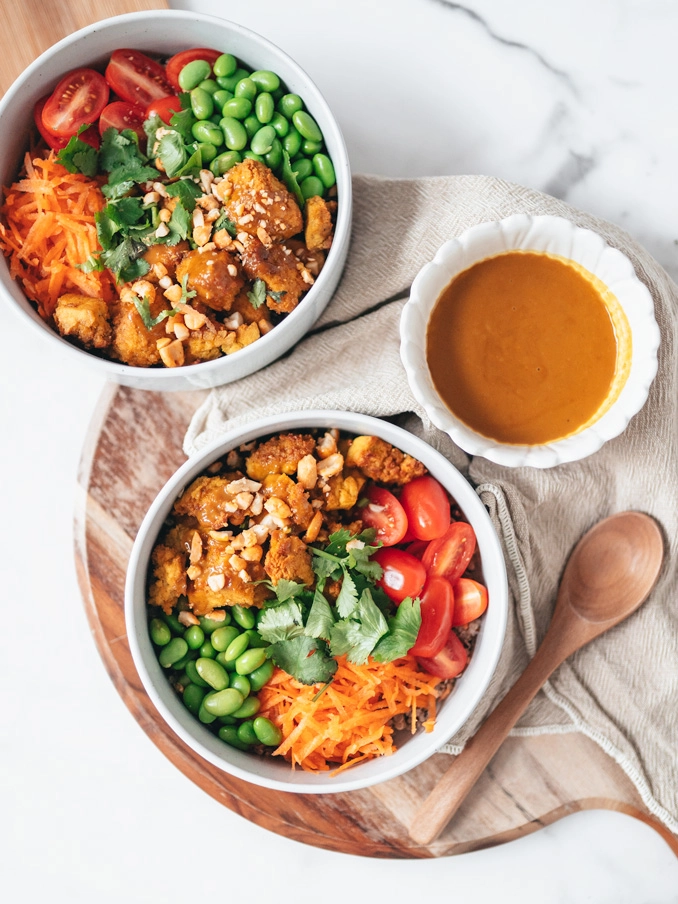 A colorful protein-packed power bowl filled